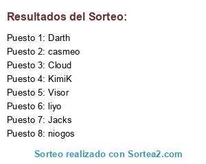 Lista de participantes: Cloud, Darth, Jacks, KimiK, Visor, casmeo, liyo, niogos.