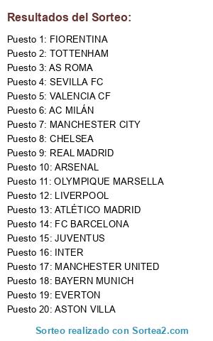 Resultados del sorteo:
