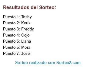 Lista de participantes: Llana, Kouk, Freddy, Toshy, Cojo, Mora, Jose.