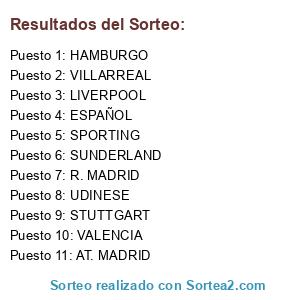 Lista de participantes: VALENCIA, HAMBURGO, R. MADRID, AT. MADRID, STUTTGART, SUNDERLAND, LIVERPOOL, UDINESE, VILLARREAL, SPORTING, ESPAÑOL.
