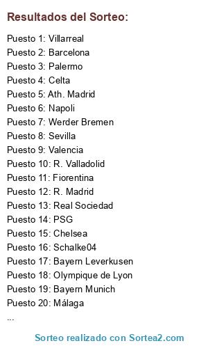 Lista de participantes: Deportivo, Bayern Munich, Barcelona, Chelsea, PSG, Liverpool, Arsenal, Villarreal, Inter de Milán, Valencia, Manchester City, Olympique de Lyon, Ath. Madrid, Roma, AC Milán, Real Sociedad, R. Madrid, R. Valladolid, Sevilla, Juventus, Napoli, Palermo, Celta, Werder Bremen, Schalke04, Lazio, Bayern Leverkusen, Fiorentina, Numancia, Newcastle, Recreativo, Málaga.