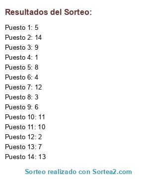 Resultados del sorteo: