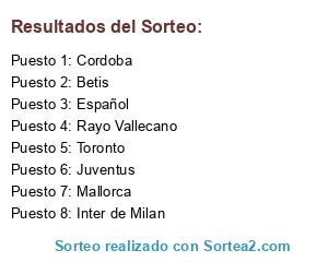 Lista de participantes: Mallorca, Juventus, Inter de Milan, Español, Betis, Cordoba, Toronto, Rayo Vallecano.