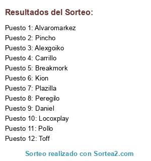 Lista de participantes: Kion, Alexgoiko, Toff, Alvaromarkez, Plazilla, Carrillo, Locoxplay, Daniel, Breakmork, Peregilo, Pincho, Pollo.