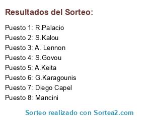 Lista de participantes: S.Kalou, G.Karagounis, S.Govou, A.Keita, R.Palacio, A. Lennon, Diego Capel, Mancini.