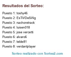 Lista de participantes: verdantplayer, alvaro6, nachoretrack, telde81, EsTiVDeSiNg, luisen018, toshy46, jose vercetti.