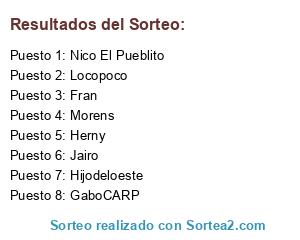 Lista de participantes: Fran, Locopoco, GaboCARP, Morens, Nico El Pueblito, Herny, Jairo, Hijodeloeste.