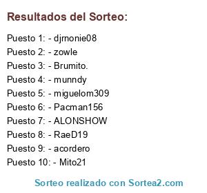 Lista de participantes: - Brumito., - RaeD19, - djrnonie08, - ALONSHOW, - acordero, - zowle, - Pacman156, - Mito21, - miguelom309, - munndy.