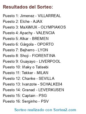 Lista de participantes: Tekker - MILAN, Gárgola - OPORTO, Jimenez - VILLARREAL, Elche - AJAX, Granad - LEVERKUSEN, Ivanzote - SCHALKE04, Serginho - PSV, MaXiMUX - OLYMPIAKOS, Chanke - SEVILLA, Guayayo - LIVERPOOL, Bejherro - LYON, Apachy - VALENCIA, Alkar - BREMEN, Shoji - FIORENTINA, Captain - PSG, Iñaky o Tatisebi.