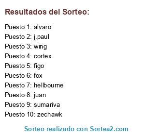 Lista de participantes: fox, sumariva, figo, zechawk, wing, cortex, hellbourne, juan, alvaro, j.paul.