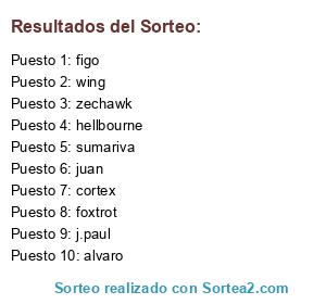 Lista de participantes: foxtrot, sumariva, zechawk, figo, wing, cortex, hellbourne, juan, alvaro, j.paul.