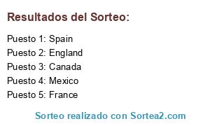 Lista de participantes: Canada, Mexico, Spain, France, England.
