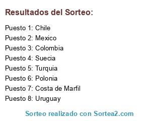 Lista de participantes: Uruguay, Colombia, Mexico, Polonia, Chile, Turquia, Costa de Marfil, Suecia.