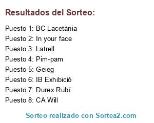 Lista de participantes: Durex Rubí, Latrell, IB Exhibició, Pim-pam, Geieg, BC Lacetània, CA Will, In your face.