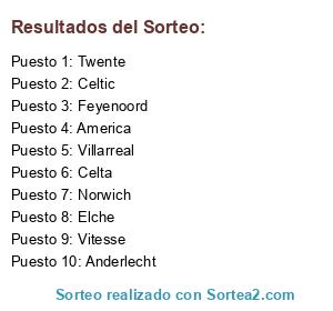Lista de participantes: Vitesse, Celta, America, Celtic, Anderlecht, Feyenoord, Elche, Norwich, Villarreal, Twente.