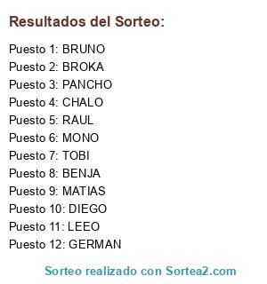 Resultados del sorteo: