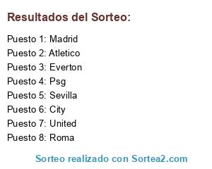 Lista de participantes: United, Everton, Roma, Atletico, City, Psg, Madrid, Sevilla.