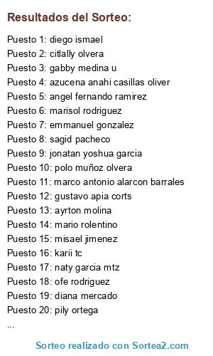 Lista de participantes: aaron arellano , abby r tovar , abigail cm , abiigail rodriiguez , abraham anzu , alan peña samperio , ameyhali garcia , angel fernando ramirez , angela ortega hernandez , angelica reyes , arthur jim ser , arturo paz , ayrton molina , azucena anahi casillas oliver , bebexita baltazar , bernardo lopez , bianca alexa mateo , cehidi janeth martinez perez , chaerin lee , citlally olvera , consuelo hm , dany hernandez , deeh hm , diana aguilar , diana mercado , dianita beiza , diego ismael , dorantes fernandez elvis , eduardo bo , emmanuel gonzalez , emmanuel manzano mena , ericka reyes , ernesto robledo , eugenia valentin , francrockz francrockz , gabby medina u , gabii flores , gaby ruiz balderrama , gustavo apia corts , gustavo moltalvo , hernandez ga , hiaras gonzalez , illya vizueth , isaac acevedo , isaias cruz , isc erick san , javier contreras , jazmin gonzalez , jesus cantera santamaria , jocelyn tba , jonatan yoshua garcia , jose israel morales , juan escamilla , karii tc , karla arias , karla nohemi hernadez ruiz , keru trejo , lety madrid aguilar , lucero luna , luis enriqe bautista mendoza , m carolna contreras , madara cesar san , mamba depin , marco antonio alarcon barrales , marco antonio carbajal fernandez , marco ps , mario luna quinones , mario rolentino , marisol rodriguez , marlen castro , marlene sanchez , marlenne islas , misael jimenez , mitzi j. cruz , nallely gp , naty garcia mtz , nexcoyotl tleteotokani , ofe rodriguez , oscar moedano , oscar santaana , patiglu r.h. , paty MV , pedro hernandez , pily ortega , polo muñoz olvera , richii castillo , roger o-o , rosa maria fernandez dorantes , rosita perez garcia , sagid pacheco , sandra lizbeth ortega chavez , stephany lorenzana , susana ordoñez , verick hds skull , yare corona , yess mendez , yessenia rodriguez , yuziri morales , vani enciso , brenda serrano cervantes.