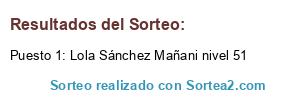 Lista de participantes: Lola Sánchez Mañani nivel 51, Marisela Oroneta nivel 55, Montchiponchi Po nivel 63, Ismael Cisneros nivel 40, Lola Cerrudo Téllez Nivel 41, Silvia Amores Francisco lvl 43, Susana Rodríguez nivel 55, Marisol Sánchez Marín Nivel 53, Verónica Larsen nivel 31, Yolanda García, nivel 57, Giovana León lvl 122, Charo Rodríguez Nivel 64, María José Gordillo Nivel 24, Carlos Navarro Nivel 53, Luisa Pérez Luisa Pérez, 60, Gema Fernández Belmonte Nivel 53, Mónica Jiménez Durán nivel 51, Gigi Nery Gutierrez lvl 39, Dennis Murcia Jr. lvl: 39, Kandace Shanon Wp 21, Coral Lázaro nivel 78, Rucas Castro Nivel 59, Lupiz Dávila Gómez nivel 61, Silvia Lamonica Nivel 51., Salander Rsanz Nivel 53, Clap Violín nivel 42, Lily Sandy nivel 65, Mari ann ferreira nivel 8.