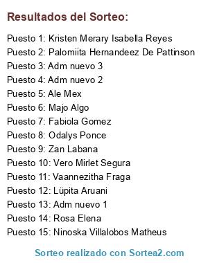 Lista de participantes: Palomiita Hernandeez De Pattinson, Lüpita Aruani, Majo Algo, Zan Labana, Odalys Ponce, Kristen Merary Isabella Reyes, Fabiola Gomez, Vaannezitha Fraga, Vero Mirlet Segura, Rosa Elena, Ninoska Villalobos Matheus, Ale Mex, Adm nuevo 1, Adm nuevo 2, Adm nuevo 3.