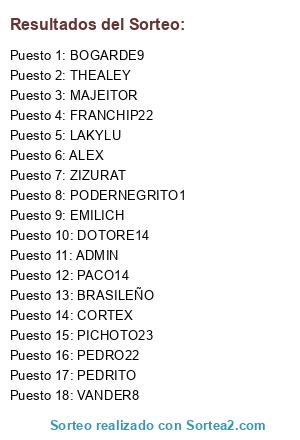Lista de participantes: PACO14, ADMIN, EMILICH, PICHOTO23, BRASILEÑO, DOTORE14, BOGARDE9, ZIZURAT, CORTEX, PODERNEGRITO1, THEALEY, PEDRITO, FRANCHIP22, MAJEITOR, VANDER8, LAKYLU, ALEX, PEDRO22.
