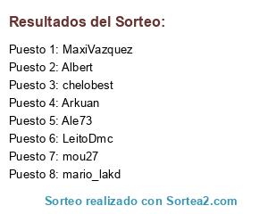 Lista de participantes: LeitoDmc, Ale73, mario_lakd, Albert, mou27, chelobest, MaxiVazquez, Arkuan.
