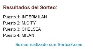 Lista de participantes: MILAN, INTERMILAN, CHELSEA, M.CITY.