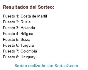 Lista de participantes: Alemania, Argentina, Brasil, España, Francia, Inglaterra, Italia, Croacia, Holanda, Portugal, Rusia, Turquia, Uruguay, Camerún, Suecia, Estados Unidos.