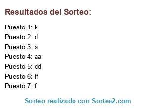Lista de participantes: k, d, a, f, dd, aa, ff, e, w.