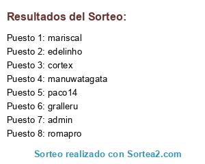 Lista de participantes: romapro, edelinho, cortex, mariscal, gralleru, manuwatagata, paco14, admin.