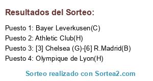 Lista de participantes: Athletic Club(H), Olympique de Lyon(H), [3] Chelsea (G)-[6] R.Madrid(B), Bayer Leverkusen(C).