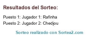 Lista de participantes: Jugador 1: Rafinha, Jugador 2: Chedjou.