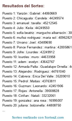 - Puesto 16: Guzman Leonardo 42451906