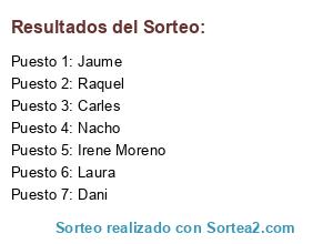Resultados del sorteo: