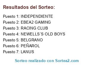 Lista de participantes: NEWELLS´S OLD BOYS, EBEA2 GAMING, INDEPENDIENTE, RACING CLUB, LANUS, PEÑAROL, BELGRANO.