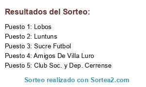 Lista de participantes: Amigos De Villa Luro, Sucre Futbol, Lobos, Club Soc. y Dep. Cerrense, Luntuns.