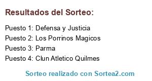 Lista de participantes: Los Porrinos Magicos, Parma, Clun Atletico Quilmes, Defensa y Justicia.