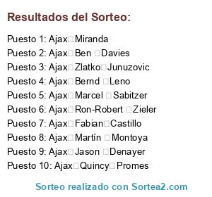 Lista de participantes: Ajax Miguel Moyá, Ajax Joao Moutinho, Ajax Fabian Castillo, Ajax Dimitri Payet, Ajax Matthias Ginter, Ajax Zlatko Junuzovic, Ajax Idrissa Gueye, Ajax Antonio Latorre, Ajax Alex Oxlade-Chamberlain, Ajax Ron-Robert Zieler, Ajax Rubén Sobrino, Ajax Miranda, Ajax Bernd Leno, Ajax Arthur Masuaku, Ajax Ander Capa, Ajax Martín Montoya, Ajax Cristian Portugués, Ajax Quincy Promes, Ajax Marcel Sabitzer, Ajax Georgiy Dzhikiya Dzhikiya, Ajax Jason Denayer, Ajax Henry Onyekuru, Ajax Ben Davies.