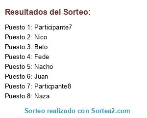 Lista de participantes: Fede, Nico, Naza, Beto, Juan, Nacho, Participante7, Particpante8.