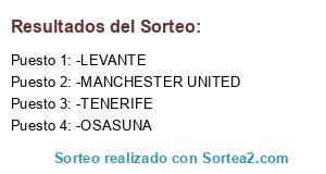 Lista de participantes: -LEVANTE, -MANCHESTER UNITED, -OSASUNA, -TENERIFE.