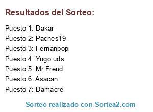 Lista de participantes: Asacan, Paches19, Dakar, Mr.Freud, Fernanpopi, Yugo uds, Damacre.