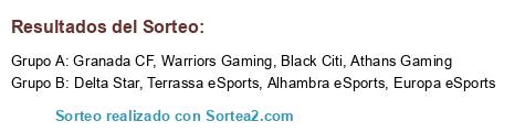 Lista de participantes: Alhambra eSports, Athans Gaming, Warriors Gaming, Granada CF, Black Citi, Europa eSports, Terrassa eSports, Delta Star.