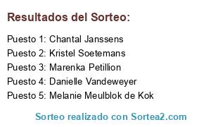 Lista de participantes: Anja van Amersfoort , Chantal Janssens, Danielle Vandeweyer , Hennie Pietersma , Jeanette Luesink Prins , Kristel Soetemans , Lieve Gys , Marenka Petillion , Melanie Meulblok de Kok , Odette Dot Raassens , Tineke Boonstra .