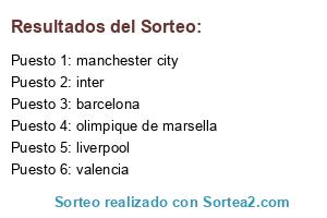 Lista de participantes: barcelona, liverpool, inter, real madrid, milan, chelsea, manchester city, valencia, olimpique de marsella, arsenal.