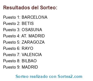 Lista de participantes: BETIS, AT. MADRID, ZARAGOZA, RAYO, VALENCIA, BARCELONA, OSASUNA, MADRID, BILBAO.
