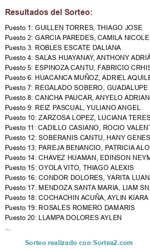 Lista de participantes: BALLADARES CHINCHE, YADIRA VALENTINA, CADILLO CASIANO, ROCIO VALENTINA, CANCHA PAUCAR, ANYELO ADRIANO, CHAVEZ HUAMAN, EDINSON NEYMAR, COCHACHIN ACUÑA, AYLIN KIARA, DOMINIQUE, CONDOR DOLORES, YARITA LUANA, ESPINOZA CANTU, FABRICIO CRHISTOPHER, GARCIA PAREDES, CAMILA NICOLE, GUILLEN TORRES, THIAGO JOSE, HUACANCA MUÑOZ, ADRIEL AQUILES, LLAMPA DOLORES AYLEN, MENDOZA SANTA MARIA, LIAM SNEYDER, OYOLA VITO, THIAGO ALEXIS, PAREJA BENANCIO, PATRICIA ALONDRA, REGALADO SOBERO, GUADALUPE MERCEDES, REIZ PASCUAL, YULIANO ANGEL, ROBLES ESCATE DALIANA, ROSALES ROMERO DAMARIS, SALAS HUAYANAY, ANTHONY ADRIÁN, SOBERANIS CANTU, HANY GENESIS, ZARZOSA LOPEZ, LUCIANA TERESA.