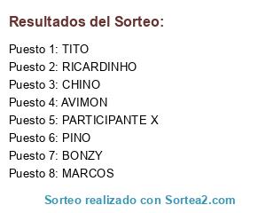 Lista de participantes: CHINO, MARCOS, AVIMON, RICARDINHO, PARTICIPANTE X, BONZY, TITO, PINO.