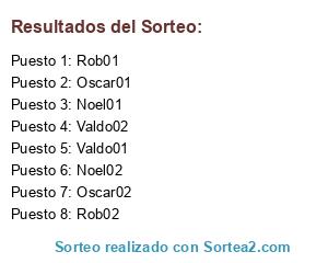 Lista de participantes: Noel01, Noel02, Oscar01, Oscar02, Rob01, Rob02, Valdo01, Valdo02.
