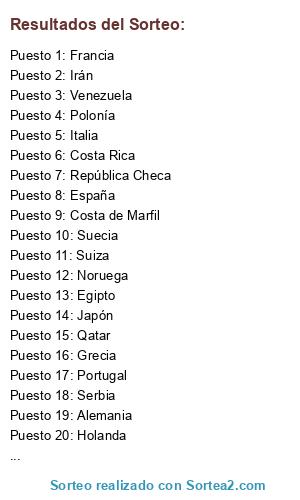 Resultados del sorteo: