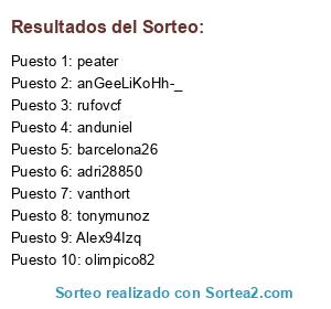 Lista de participantes: tonymunoz, anduniel, vanthort, olimpico82, anGeeLiKoHh-_, peater, adri28850, rufovcf, barcelona26, Alex94Izq.